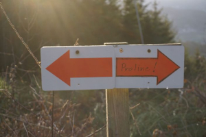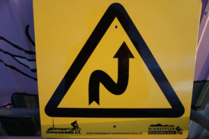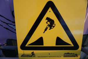 Ein paar der Kurven auf den Trails haben rasante Richtungswechsel, von diesem Schild werdet ihr auf diese vorbereitet.