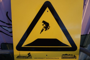 Vor kleineren Absätzen und Kanten werdet ihr von diesem Schild gewarnt.